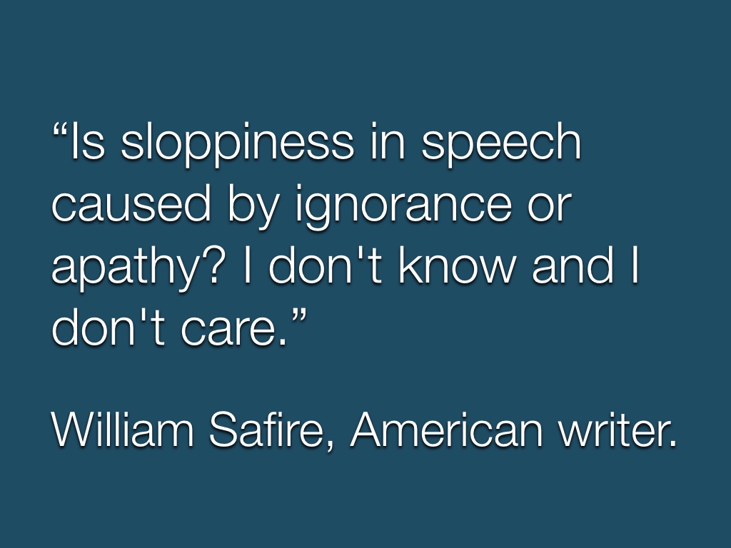 Is sloppiness in speech caused by ignorance or apathy? I don’t know and I don’t care.