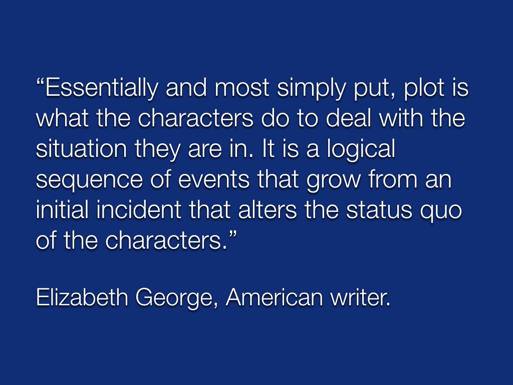 Essentially and most simply put, plot is what the characters do to deal with the situation they are in. It is a logical sequence of events that grow from an initial incident that alters the status quo of the characters.