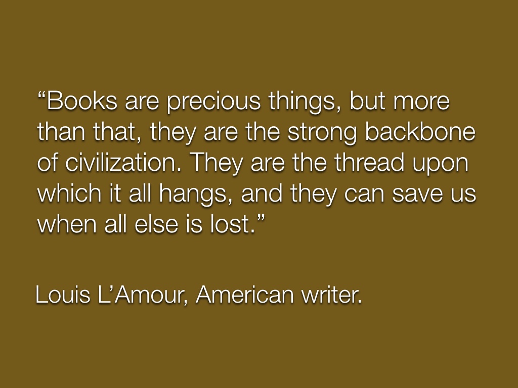 Books are precious things, but more than that, they are the strong backbone of civilization. They are the thread upon which it all hangs, and they can save us when all else is lost.
