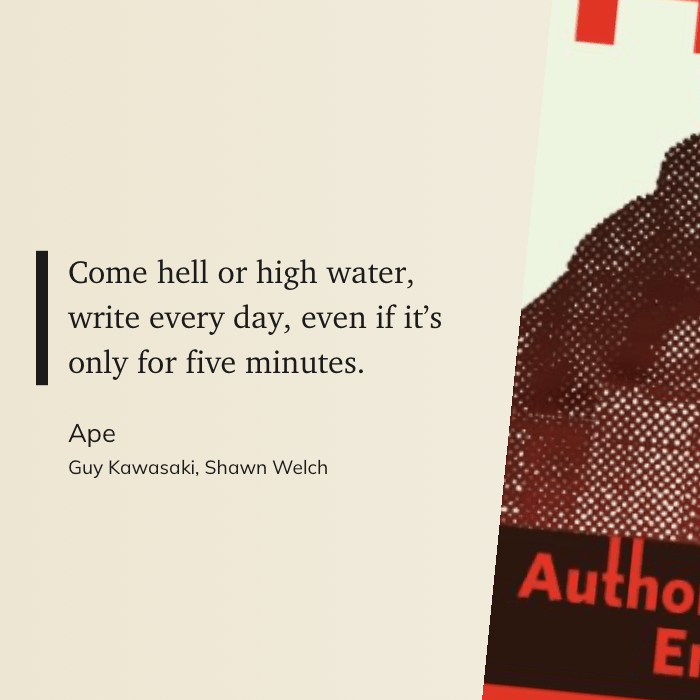 “Come hell or high water, write every day, even if it’s only for five minutes.” (Guy Kawasaki, Shawn Welch, Ape)