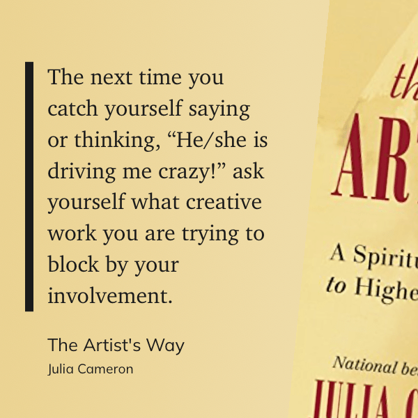 “The next time you catch yourself saying or thinking, “He/she is driving me crazy!” ask yourself what creative work you are trying to block by your involvement.” (Julia Cameron, The Artist’s Way)