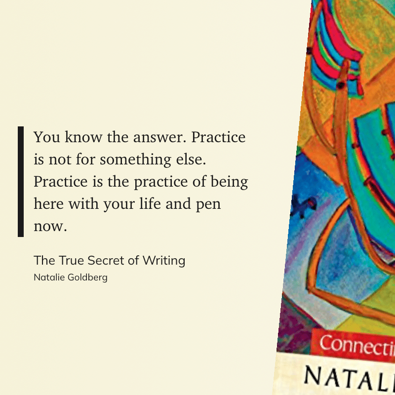 “You know the answer. Practice is not for something else. Practice is the practice of being here with your life and pen now.” (Natalie Goldberg, The True Secret of Writing)