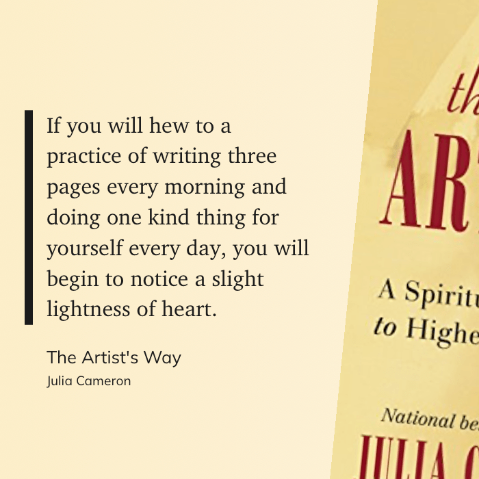 “If you will hew to a practice of writing three pages every morning and doing one kind thing for yourself every day, you will begin to notice a slight lightness of heart.” (Julia Cameron, The Artist’s Way)