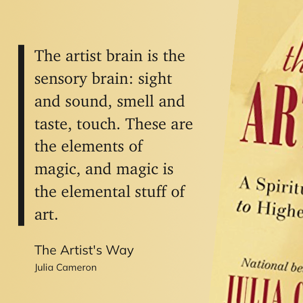 “The artist brain is the sensory brain: sight and sound, smell and taste, touch. These are the elements of magic, and magic is the elemental stuff of art.” (Julia Cameron, The Artist’s Way)
