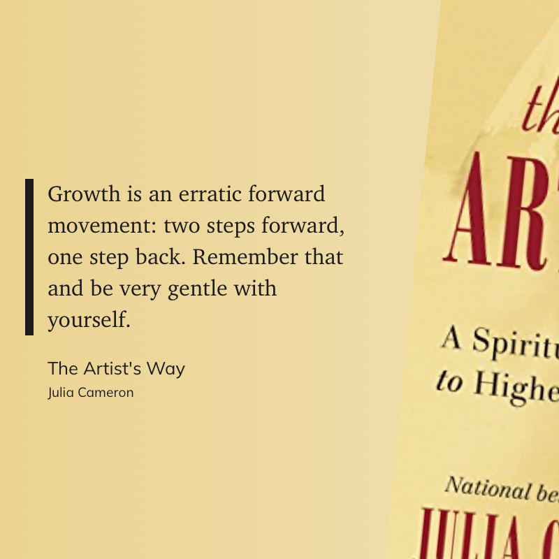 “Growth is an erratic forward movement: two steps forward, one step back. Remember that and be very gentle with yourself.” (Julia Cameron, The Artist’s Way)