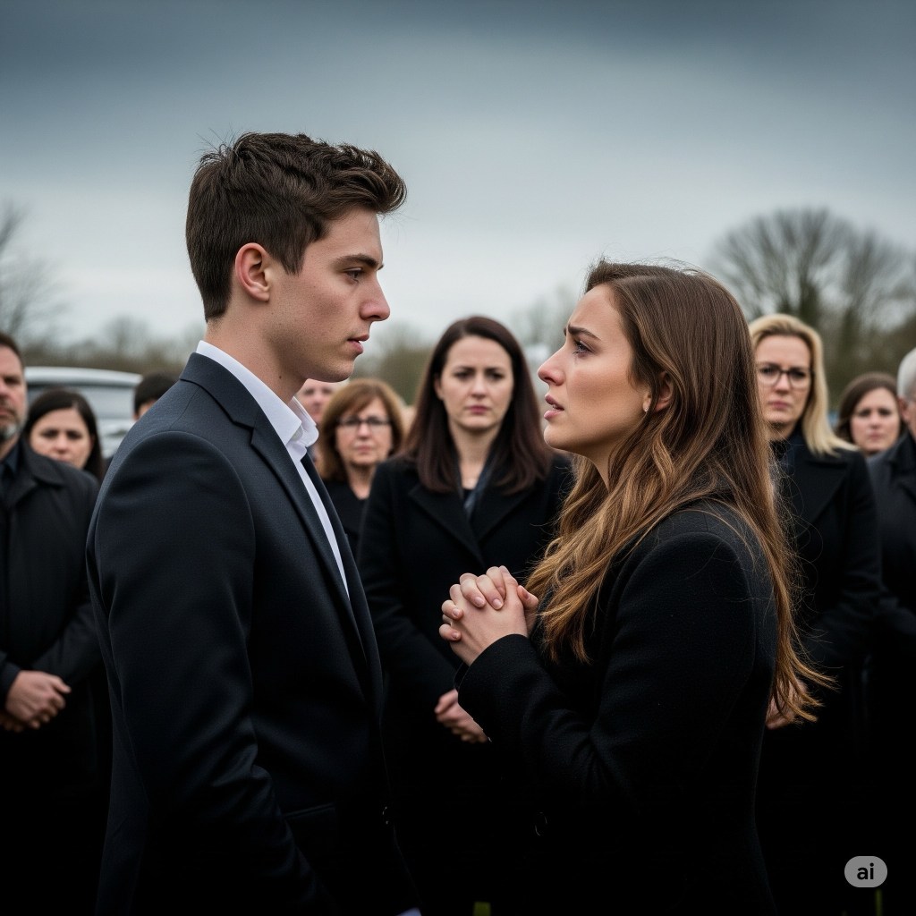 Mourning figures in a tense exchange, highlighting unspoken emotions. Prompt explored pressure/confrontation in a charged context. Generated by Gemini.