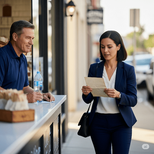 A woman rushing to her first in-person job interview in years stops at a bakery to buy a bottle of water. The cashier mistakes her for a former coworker, starts reminiscing, and hands her an old note left for this other person. The woman doesn’t correct him. She reads the note while walking, and it unsettles her—a message of encouragement, maybe faith or apology. She arrives at the interview, pauses outside, and decides not to go in—not out of fear, but because something in her just shifted, and she wants to understand what.