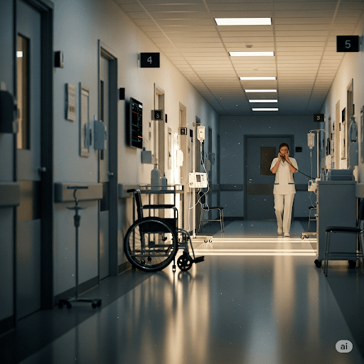A writer fluent in chaotic, rhythm-driven interiority composes a fragmented scene of a narrator waiting for biopsy results, told entirely through a series of obsessive catalogued sounds overheard in a hospital hallway—without naming the event or the outcome.