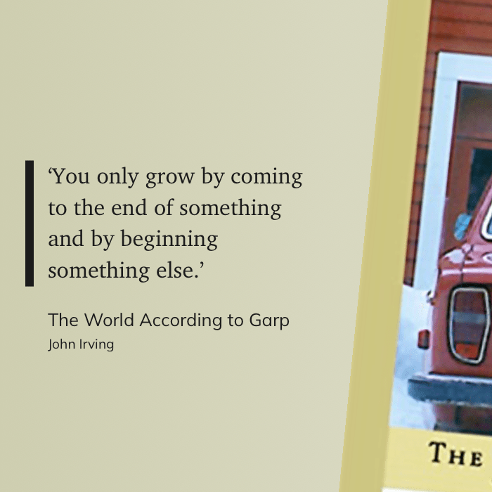 “‘You only grow by coming to the end of something and by beginning something else.’” (John Irving, The World According to Garp)
