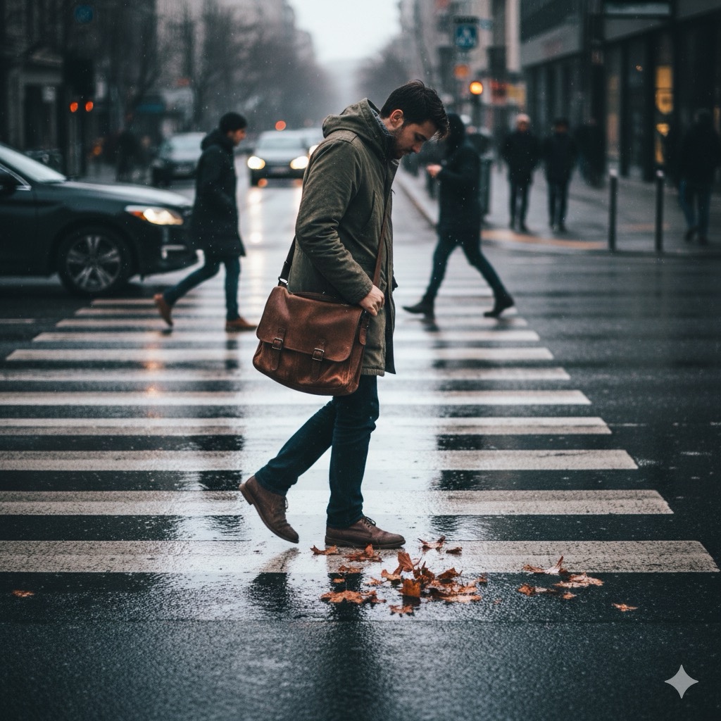 The character stopped at the corner. The pavement pressed cold through their shoes and the chill made their fingers stiff. A vending machine hummed nearby, matching the quick pulse in their chest. A shaft of late-morning light struck the window across the street, and they realized how often they walked without noticing anything at all. They exhaled slowly and felt the weight of their indecision ease, just a little, as they stepped forward when the light changed.