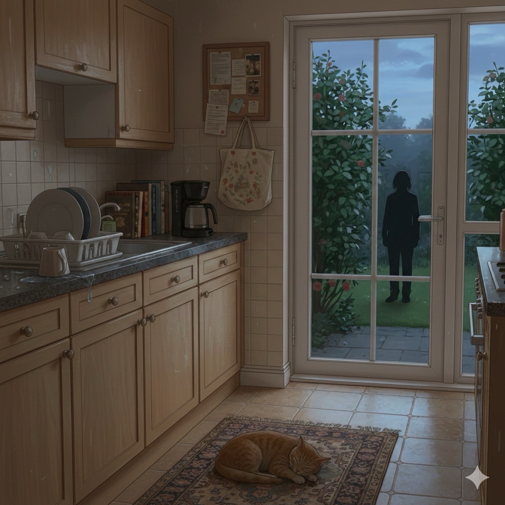 Write a scene in an ordinary place your character moves through every day. with steady sensory detail and routine motions. Let the rhythm of each sentence echo the pressure the character has been holding. At the midpoint, introduce a quiet disruption. A phrase partly overheard. A shadow moving across a wall. A shape in a doorway. An object out of place. The disruption should barely register in the physical world while landing with unexpected weight inside the character. Capture the instant of the interior shift without naming the feeling or explaining its history. Allow the prose to tilt. A repeated image. A fracture in cadence. A pause that hangs a beat too long. Keep the character moving through the scene as if nothing has changed, while the language reveals that everything has. End with a small action or decision that might be missed by an outside observer but that shows the character has crossed an unseen threshold.