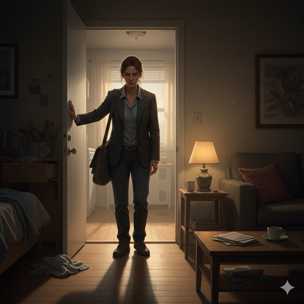 Invite small disruptions that interfere with the character’s movement. A drawer sticks. An object slips out of grasp. A light snaps on too sharply. Each disruption alters how the character moves. Shoulders lift. Breath shortens. Steps turn abrupt. Keep their focus on the task even as strain distorts each gesture.