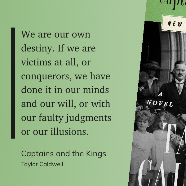 “We are our own destiny. If we are victims at all, or conquerors, we have done it in our minds and our will, or with our faulty judgments or our illusions.” (Taylor Caldwell, Captains and the Kings)