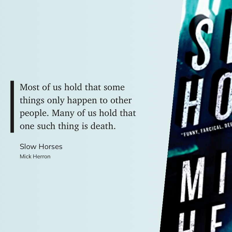 “Most of us hold that some things only happen to other people. Many of us hold that one such thing is death.” (Mick Herron, Slow Horses)