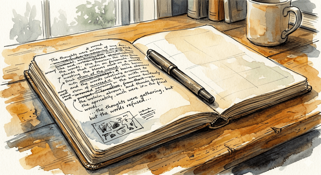 There is something that happens in those early minutes, pen moving before the mind has decided anything, the page filling with half-thoughts and crossed-out lines and small drawings that mean nothing yet, the whole quiet act of it settling something in the chest that no amount of thinking in your head ever quite reaches.