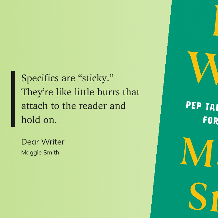 “Specifics are “sticky.” They’re like little burrs that attach to the reader and hold on.” (Maggie Smith, Dear Writer)